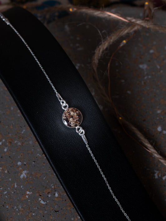 J'ai voulu marier le lait maternel au cordon de ma fille. Le bijou a été réalisé avec précision. Mettant les nuances de couleurs du cordon en avant. Chaque petite particules du cordon a été placée avec minutie et avec une réflexion derrière pour que le pendentif soit lumineux. Merci encore pour votre travail de précision.